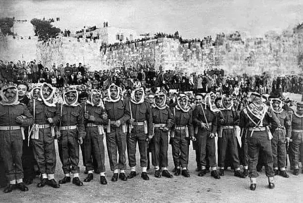 الصورة في السطر العلوي على اليسار: جنود الجيش العربي الأردني - حرب 48