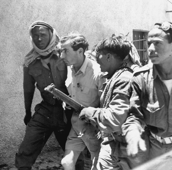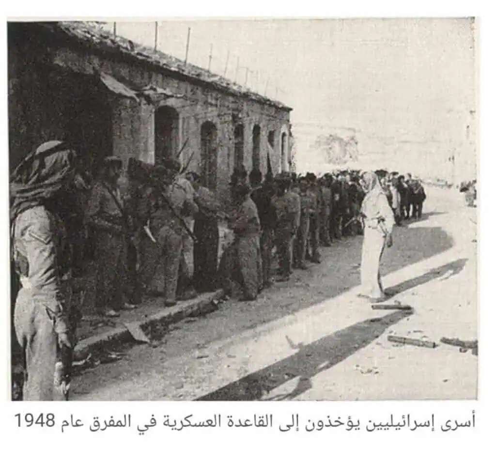 جنود من الجيش العربي يقتادون جنود يهود بعد استسلامهم في القدس 1948