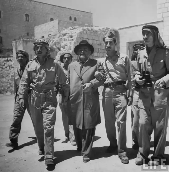 عمدة الحي اليهودي يقاد سيراً إلى مقر قائد معركة القدس عبدالله التل 1948