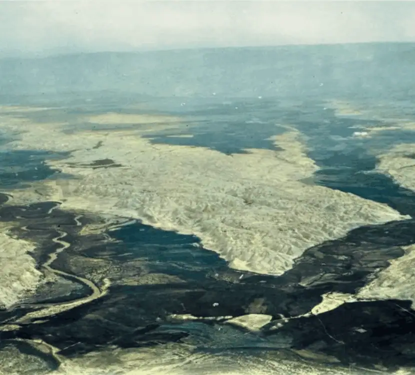 ⁨ التقاء نهر الزرقاء ونهر الأردن في منطقة دامية، صورة ملتقطة في العام 1931  - معاذ شقور .. خريطة الاردن السياحية