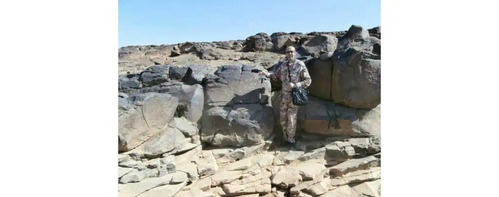الدكتور عبد القادر الحصان مع النقش الصفاوي النادر المكتشف عام 2017 – المصدر: جراسا نيوز